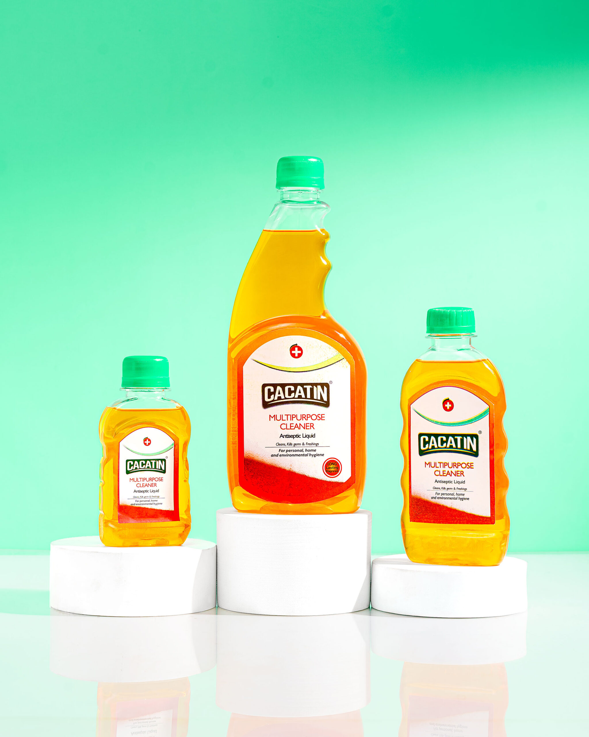 CACATIN Multipurpose Cleaner (Antiseptic Liquid) is an all-in-one hygiene solution formulated for effective cleaning and germ protection. Ideal for cleaning floors, tables, surfaces, toilets, and sinks. It can also be diluted for personal hygiene, bathing, and laundry use. Its antiseptic power ensures a clean, safe, and refreshing environment for your home and family.